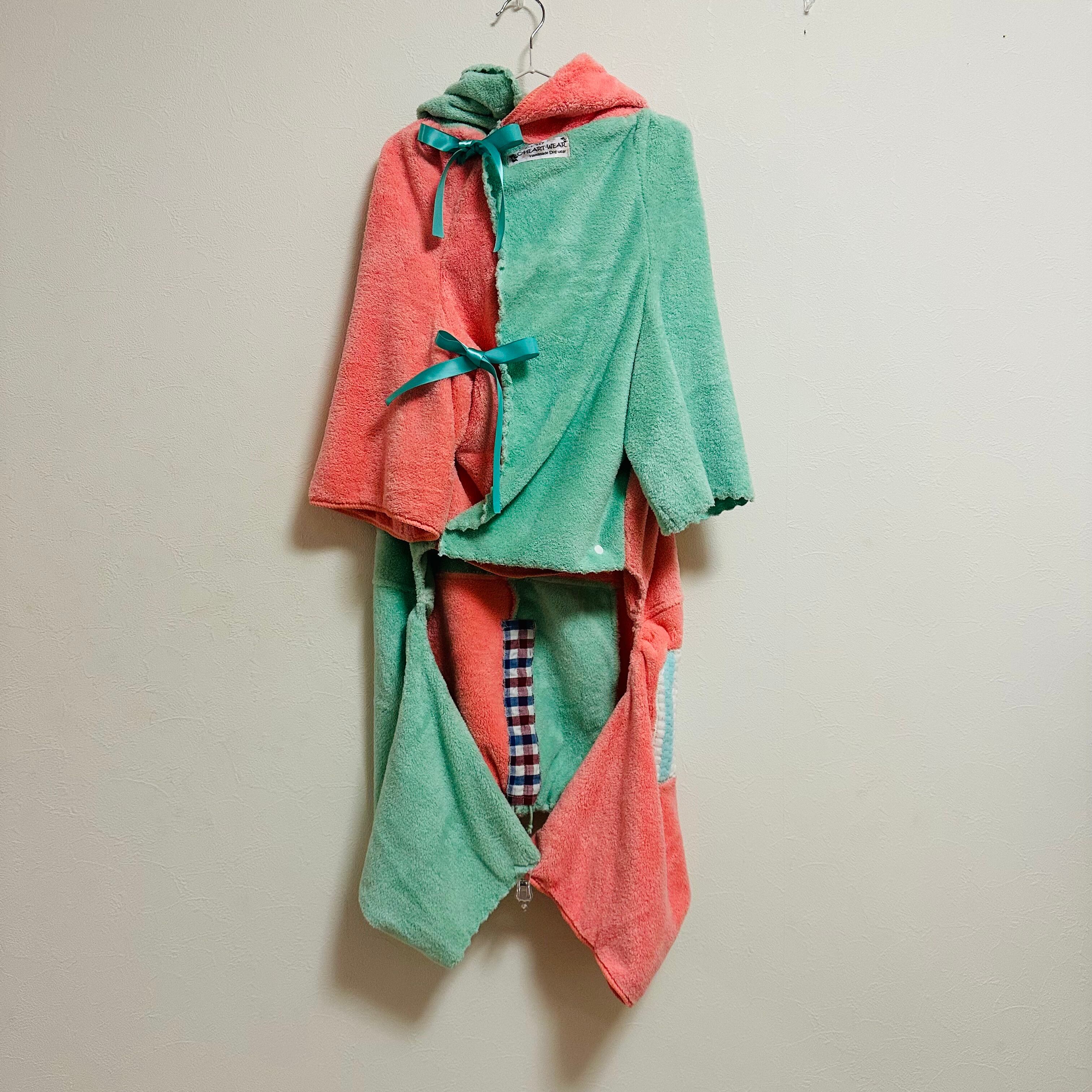 ハートのバスローブ(手足付)2024・5Lサイズ・サーモンピンク&ミントグリーン