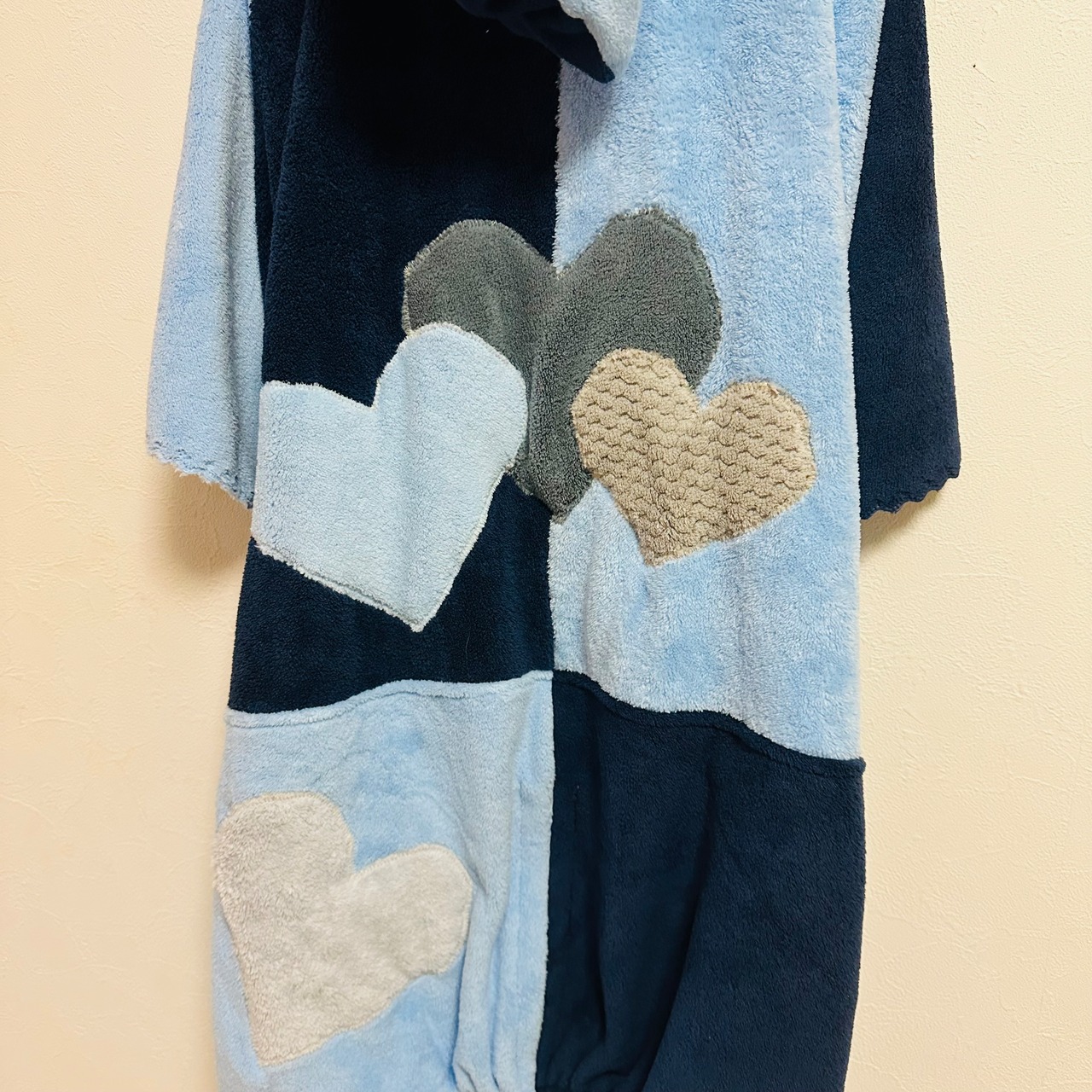ハートのバスローブ(手足付)2024・6Lサイズ・スカイブルー&ネイビー