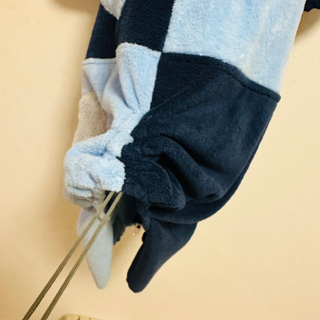 お家シャプーの後もサッと着せて、腕や足の隙間からドライヤーの風を送れば時短できますよ(温度は低めにしてね)