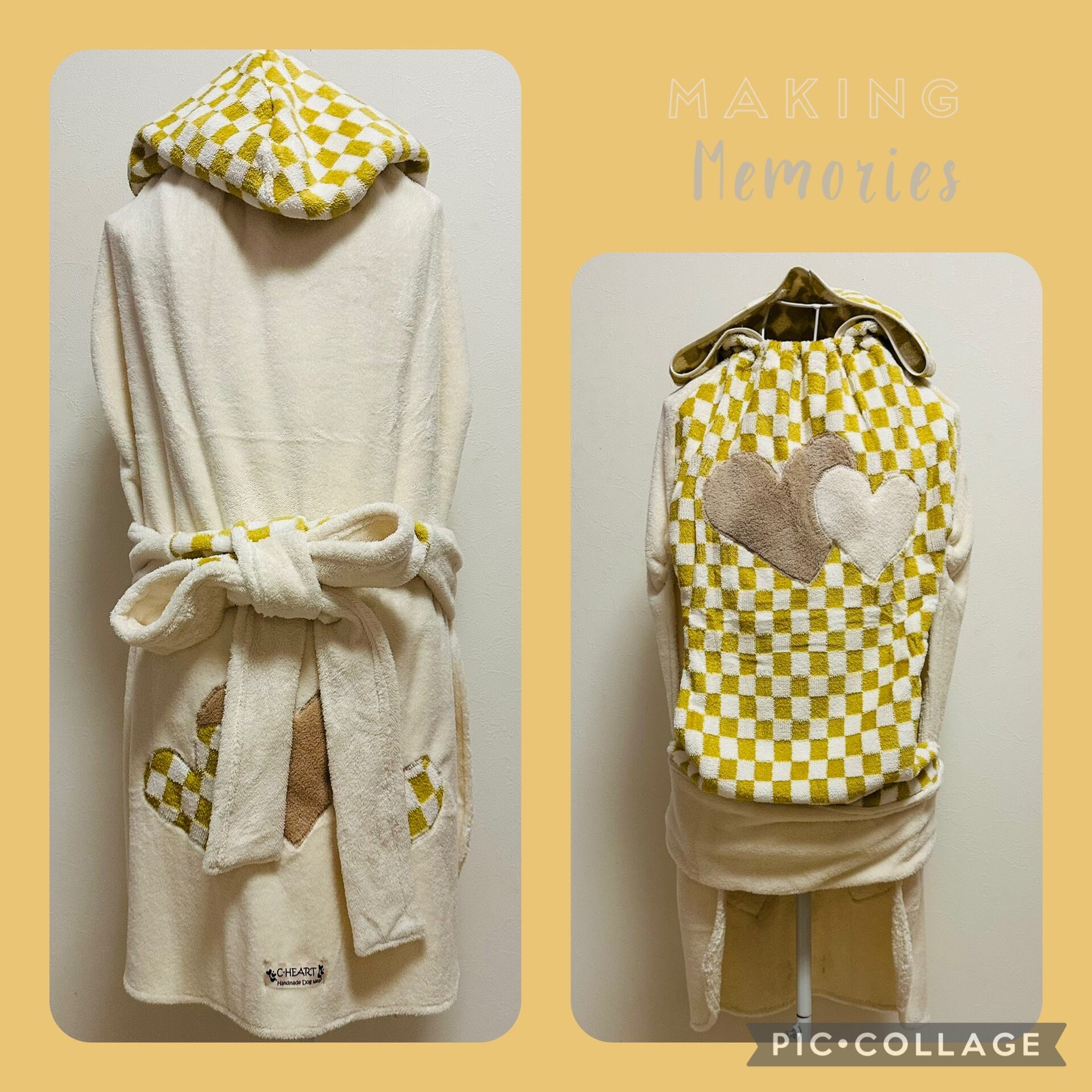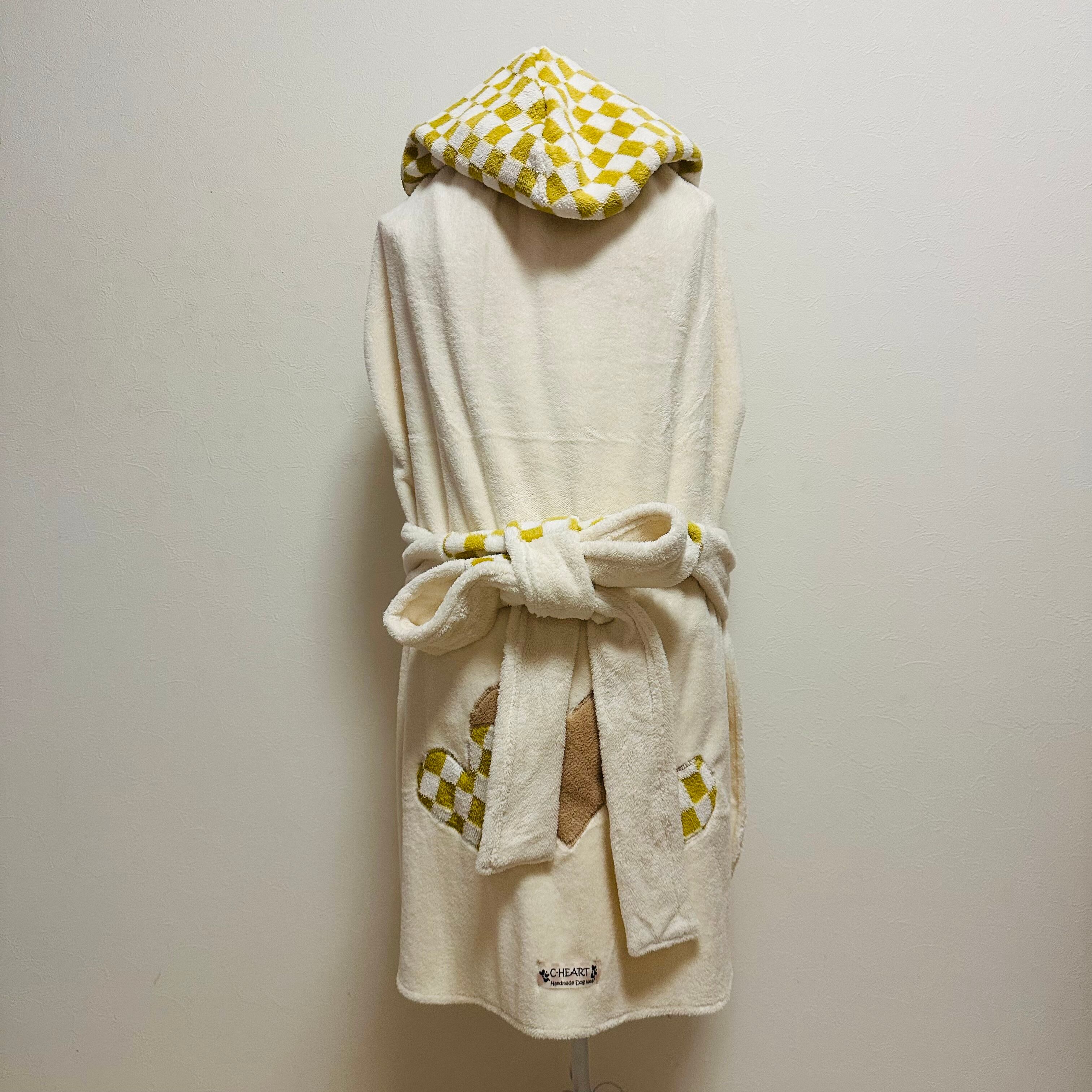フリーサイズ・ハートのバスローブ イエローブロック柄×クリーム