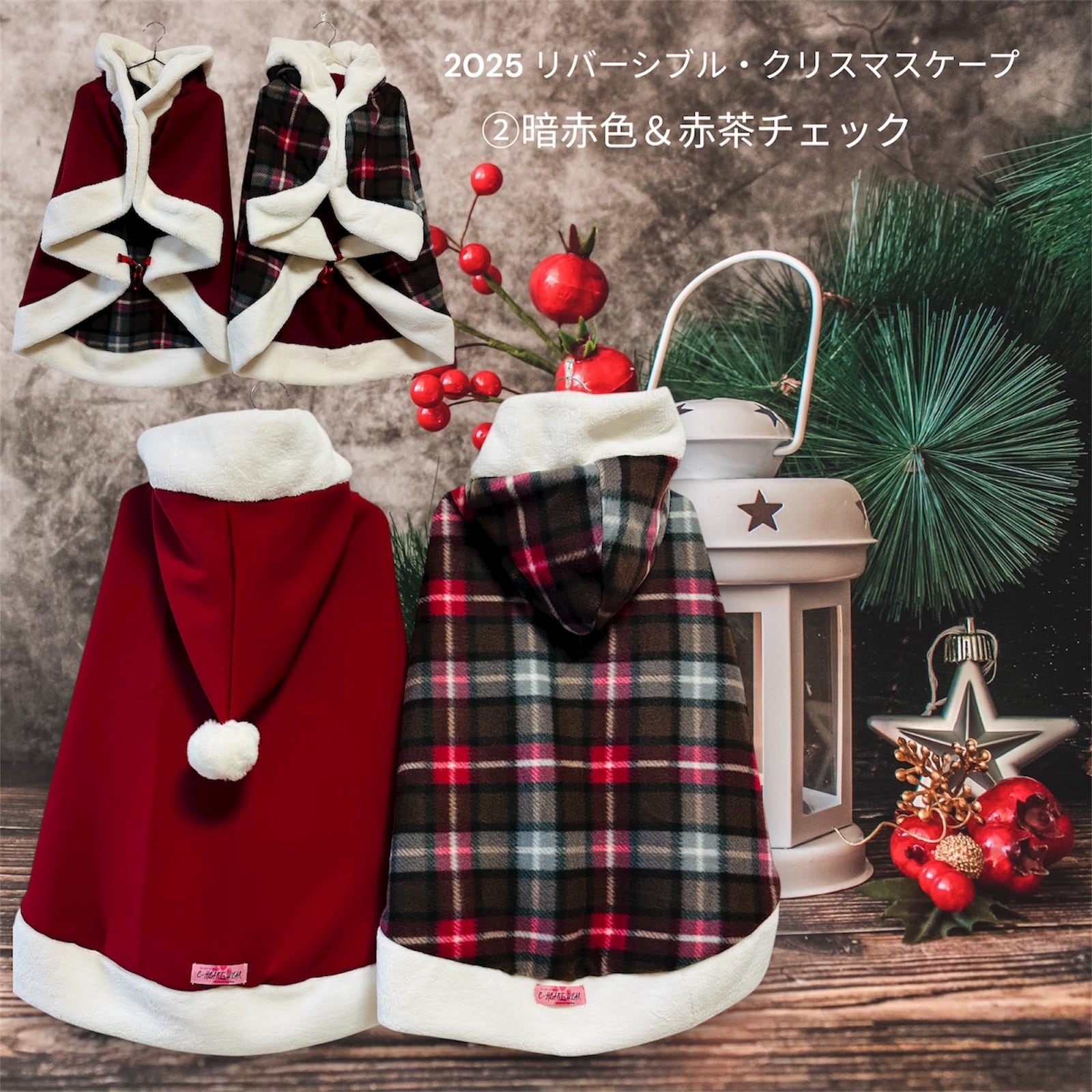 愛犬のおしゃれを楽しむために最適なアイテムが登場です! 2025・リバーシブルクリスマスケープは、愛犬にぴったりのクリスマススタイルを演出します。リバーシブルのデザインにより、シーンに応じて雰囲気を変えることができます!