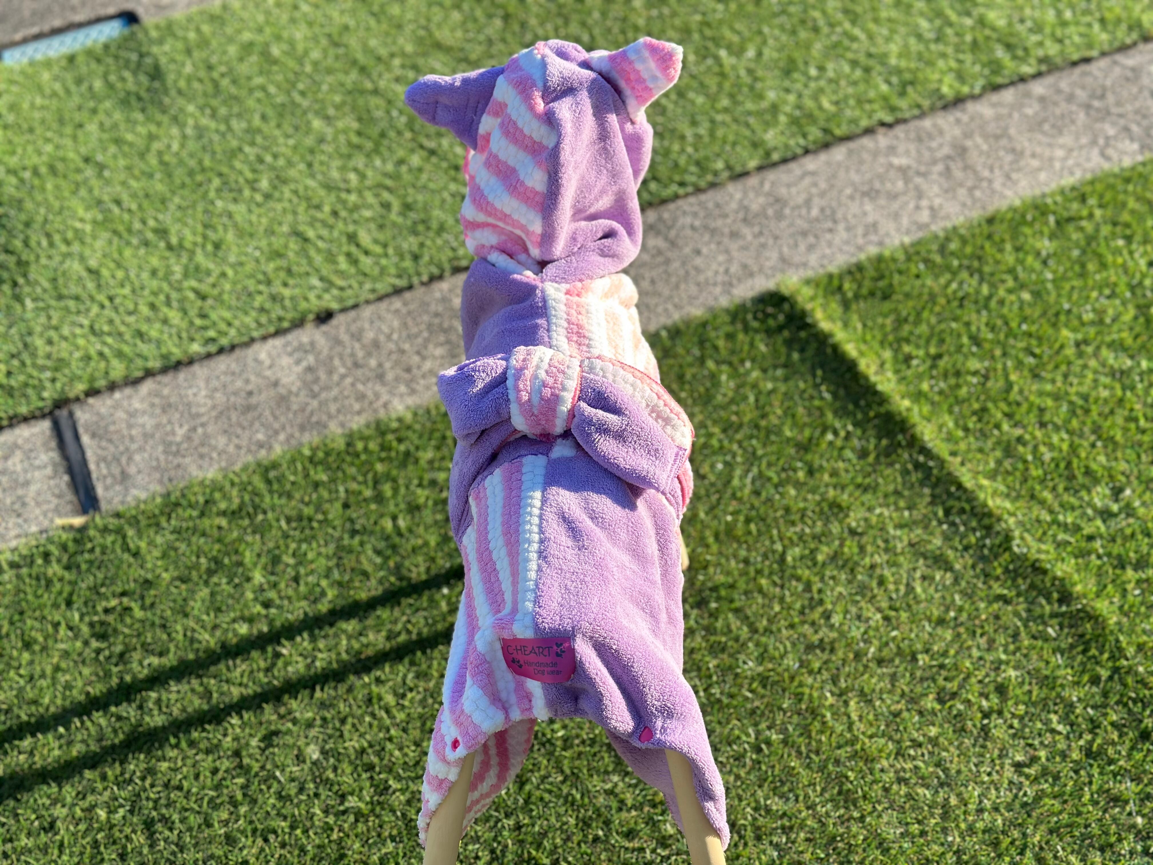 耳付きかんたんバスローブ2色ver・3Lサイズ パープル✖️ストライプピンク