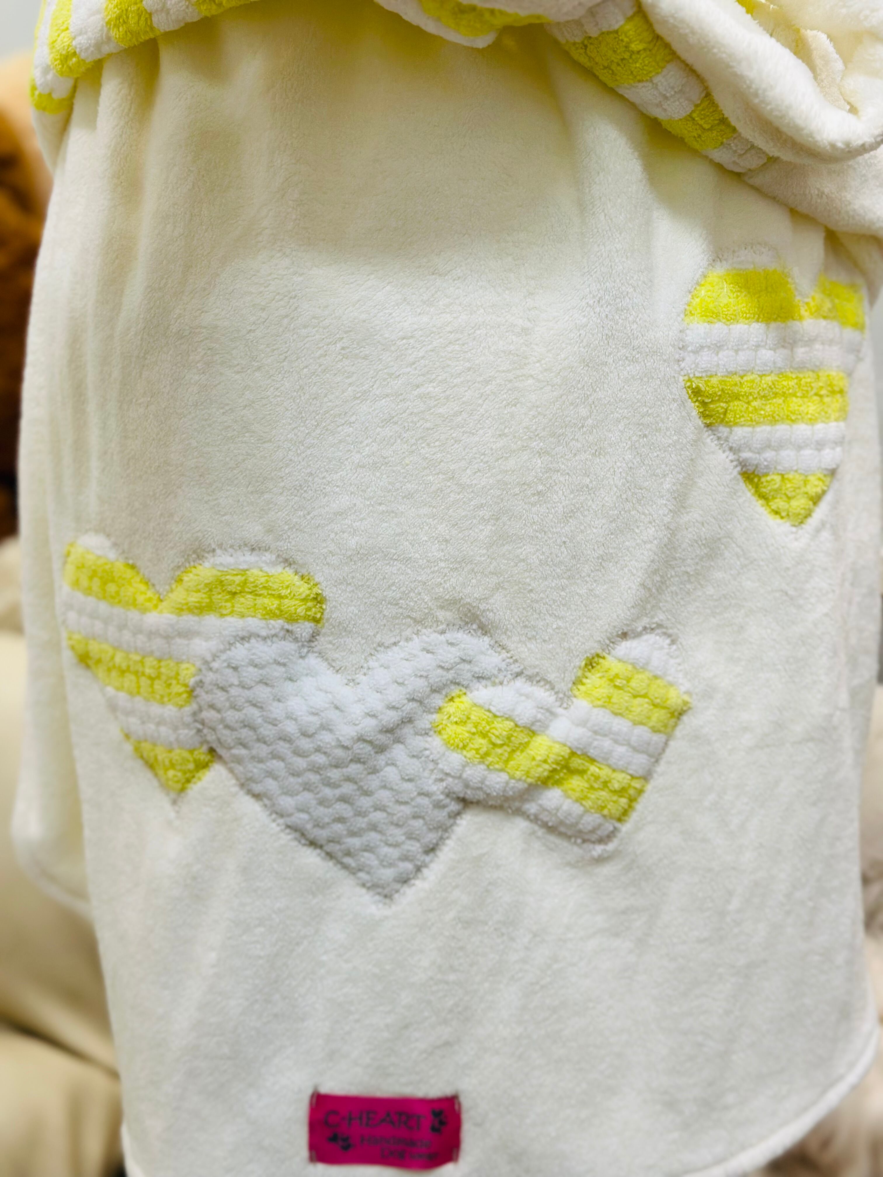 フリーサイズ・ハートのバスローブ ホワイト×イエローストライプ