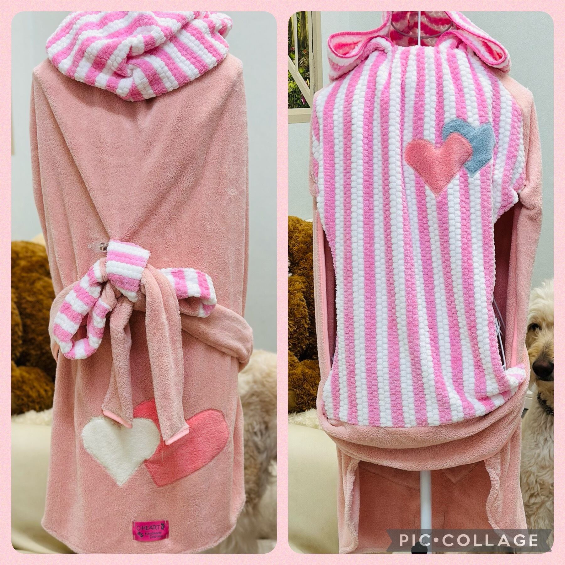 フリーサイズ・ハートのバスローブ ピンク×ウエイブピンク