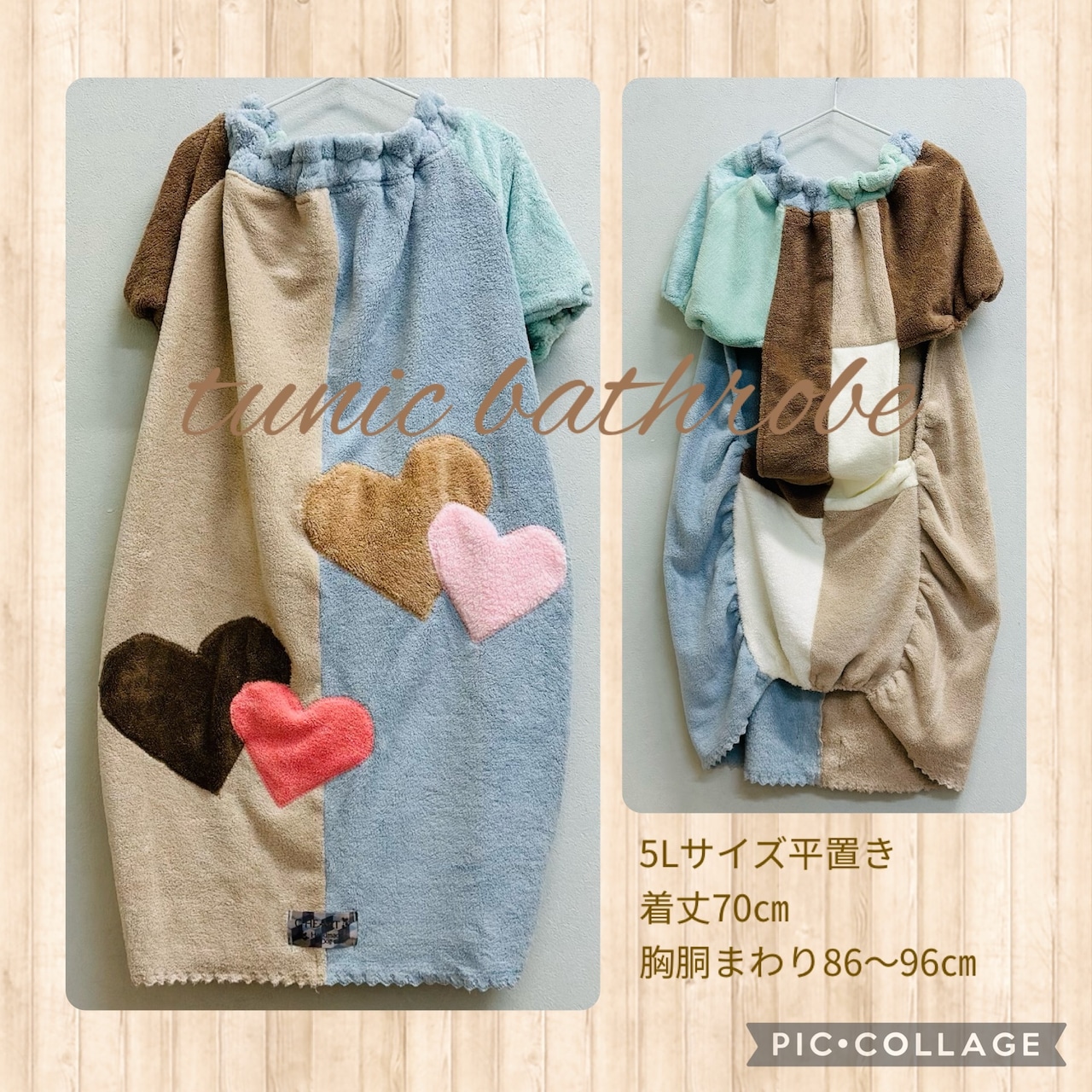 チュニックバスローブ・5Lサイズ サックスブルー&ライトグレー
