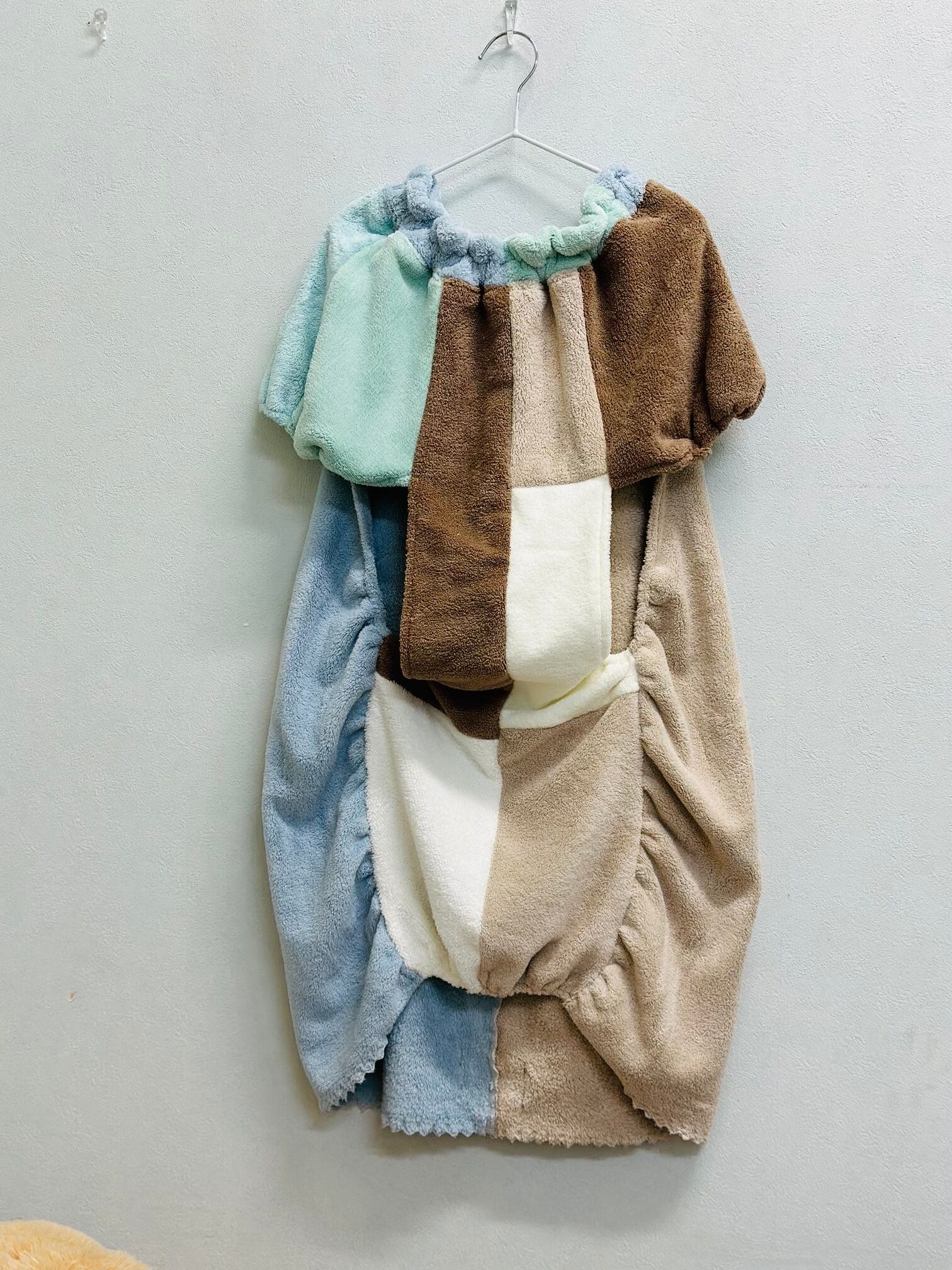 チュニックなのでゆったりした胸まわり、脱着しやすい様に脇もゆったりと…又、首まわり・袖にはゴムを入れこちらも脱着しやすい様に製作してあります。