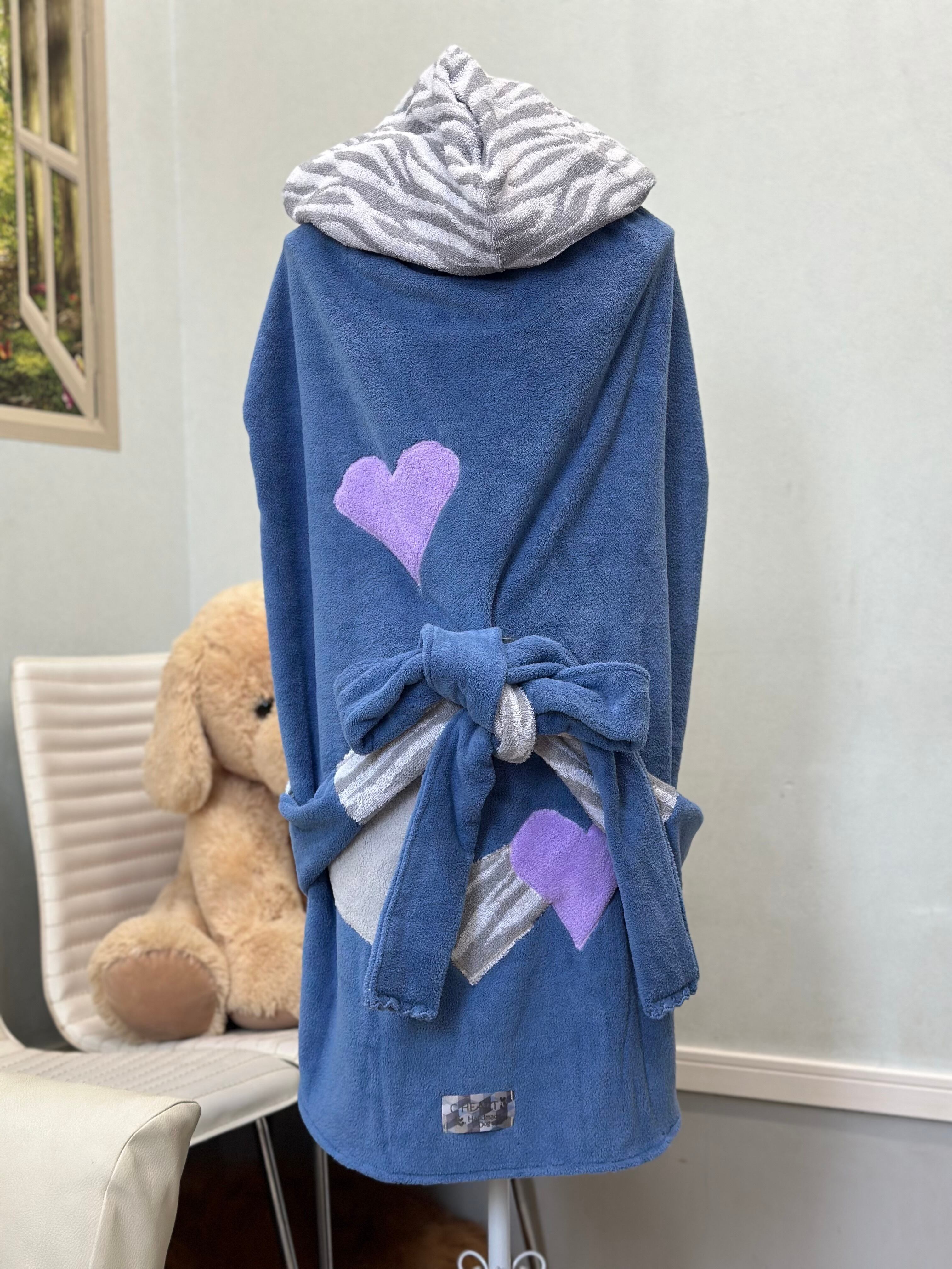 ご注文のお品 フリーサイズ・ハートのバスローブ ブルー×グレーゼブラ柄