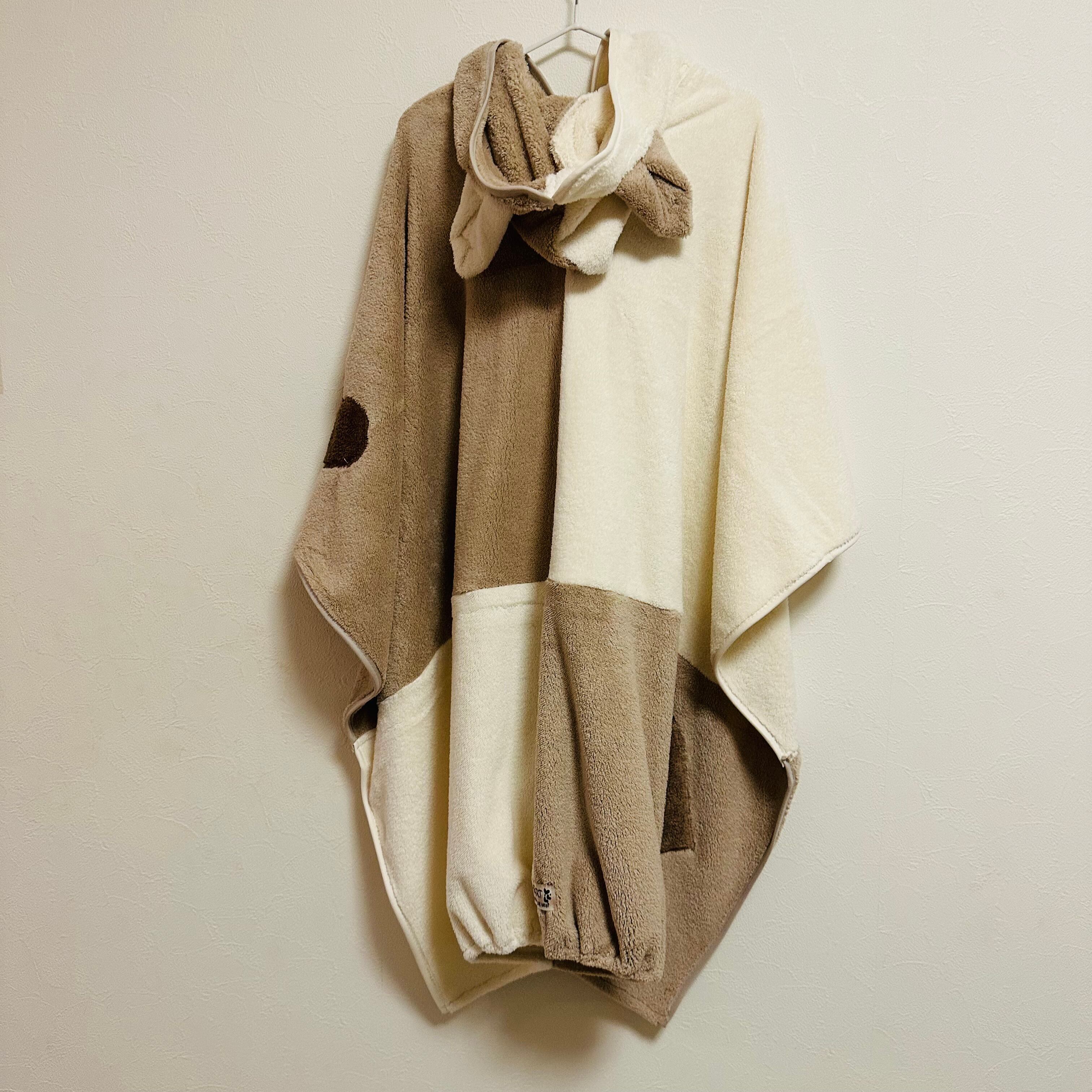 羽織りワシャワシャ・頭はフードをかぶりワシャワシャ
