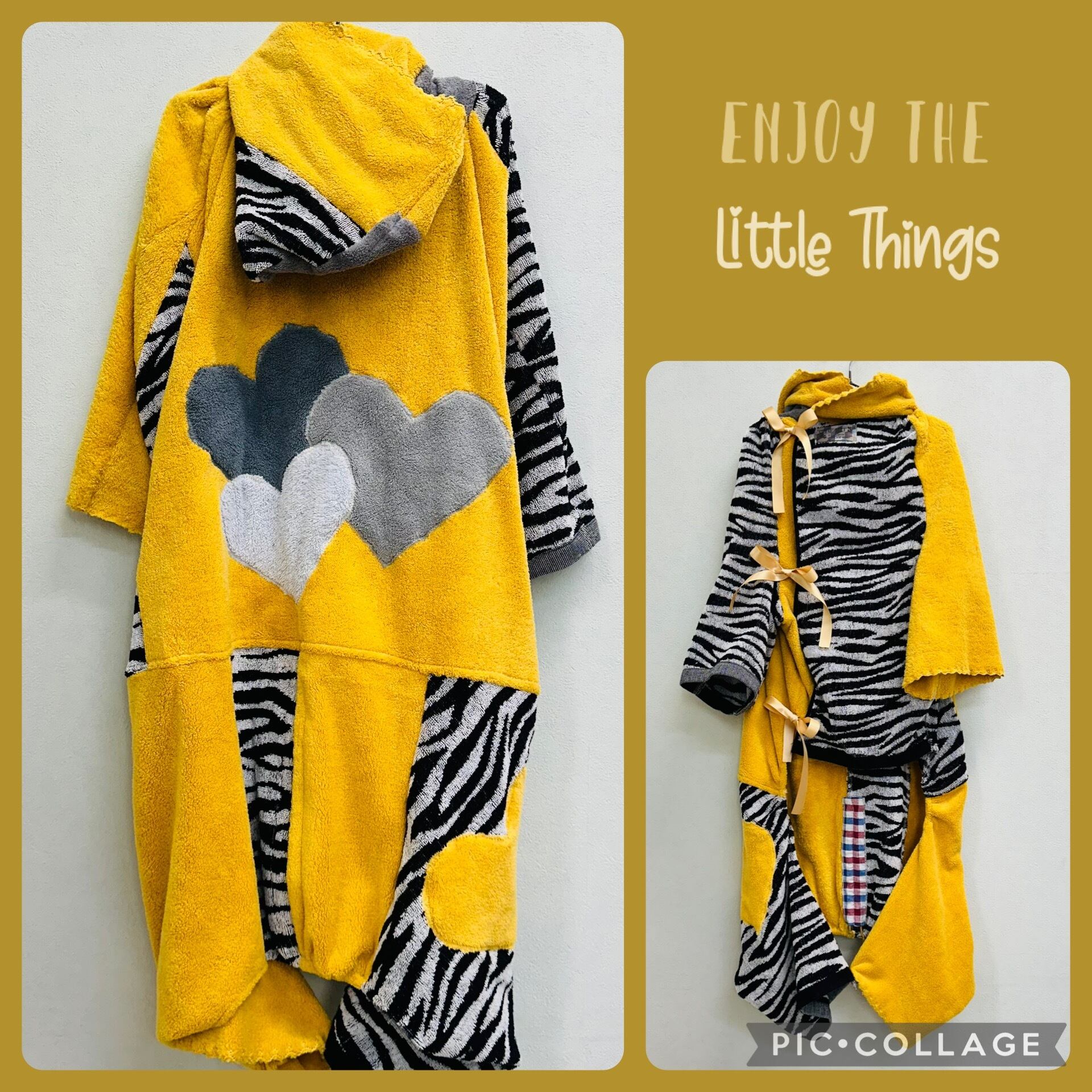ご注文のお品 イエロー&ゼブラ柄 ハートのバスローブ(手足付)2024・6Lサイズ