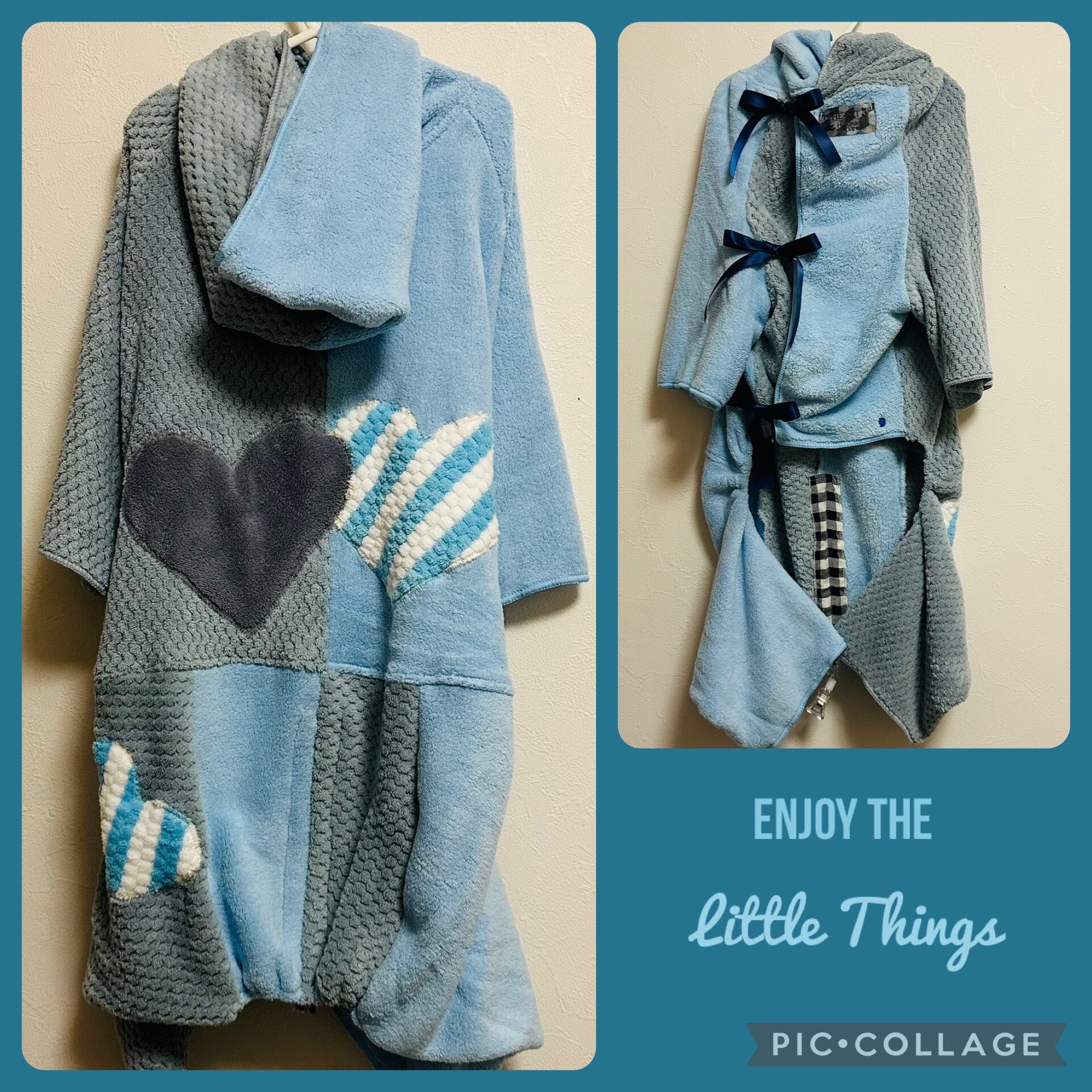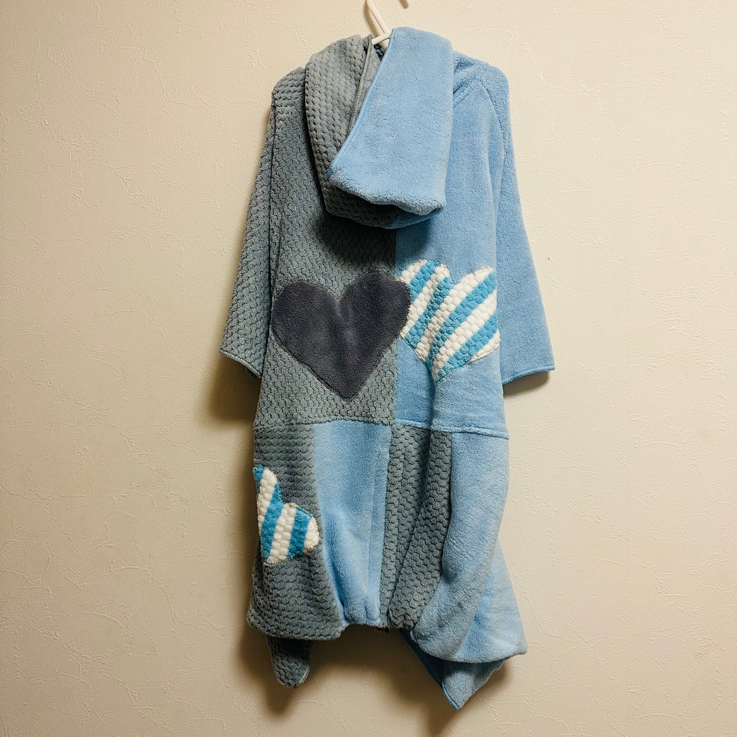 ハートのバスローブ(手足付)2024・4Lサイズ・スカイブルー&ワッフルグレー