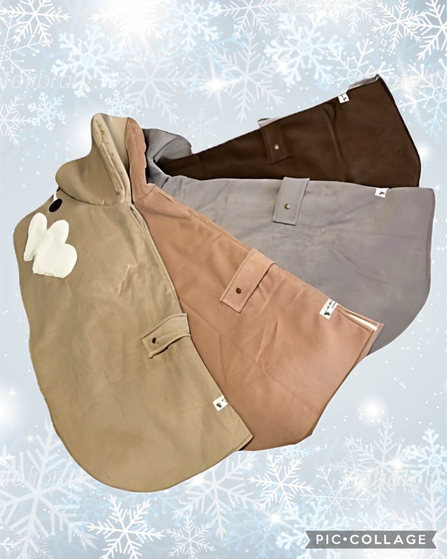 腕を通さないケープタイプですので、着用がとても楽です。裏ボアですのでとても暖かいです。