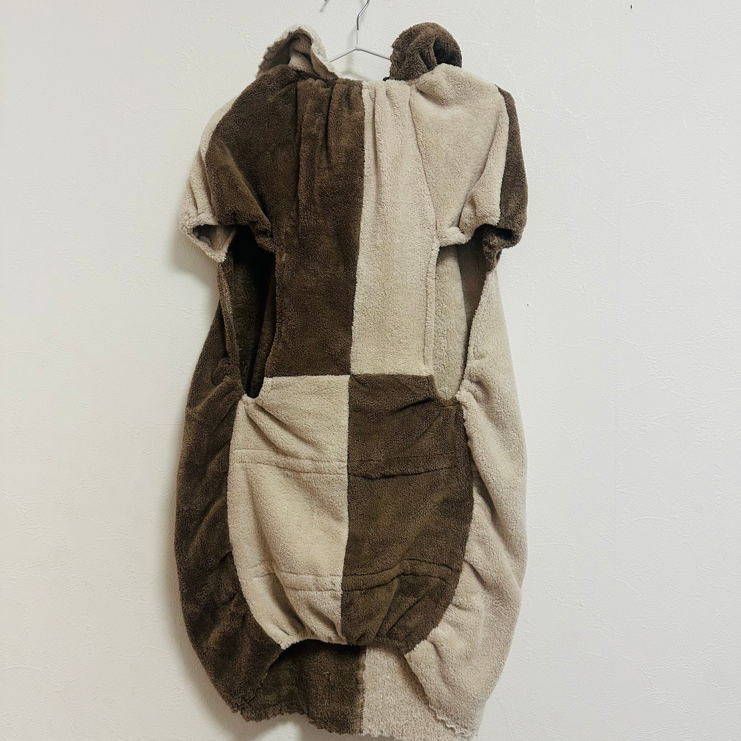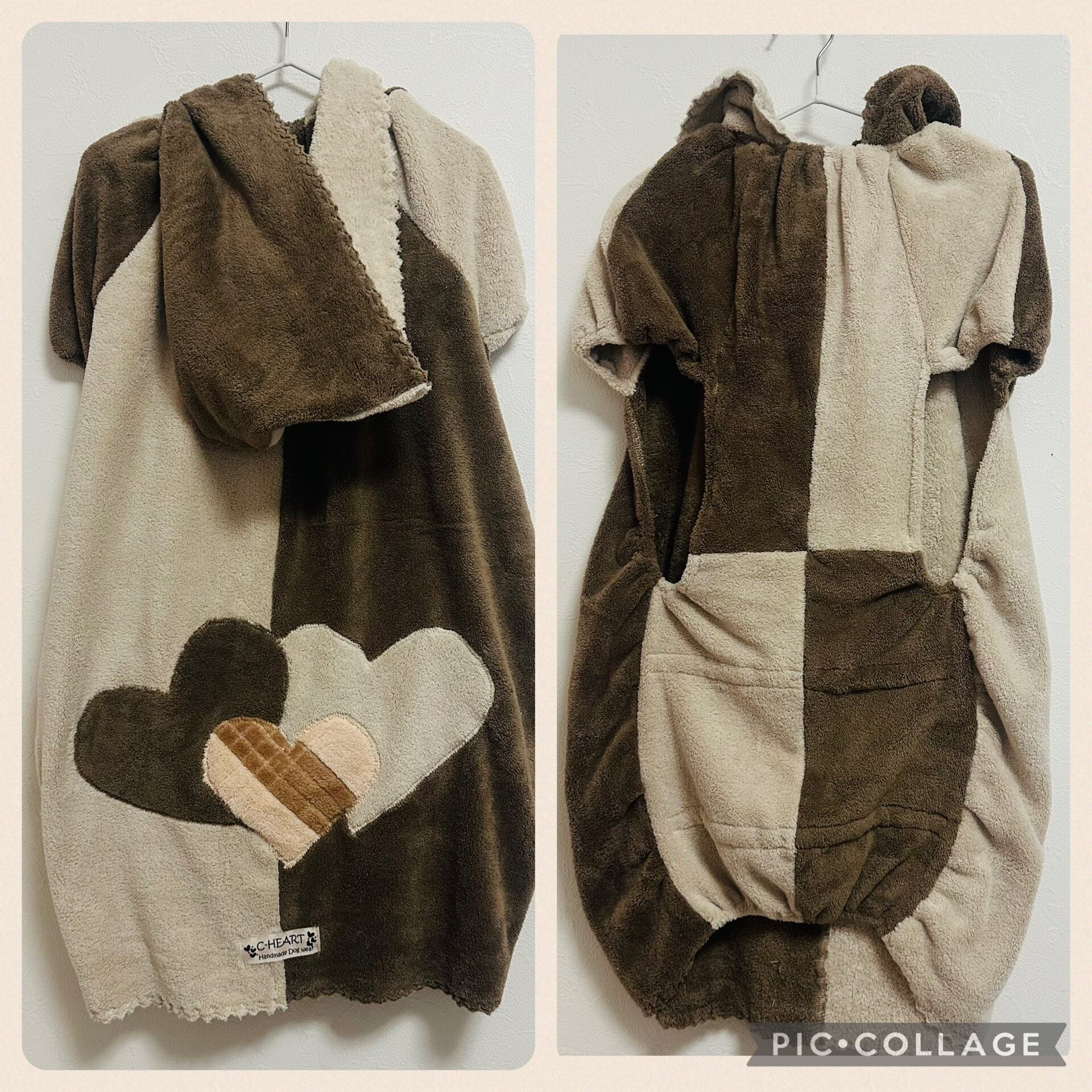 ハートのチュニックバスローブ・フード付き(ワンピースタイプ)2024・4Lサイズ ブラウン&ベージュ